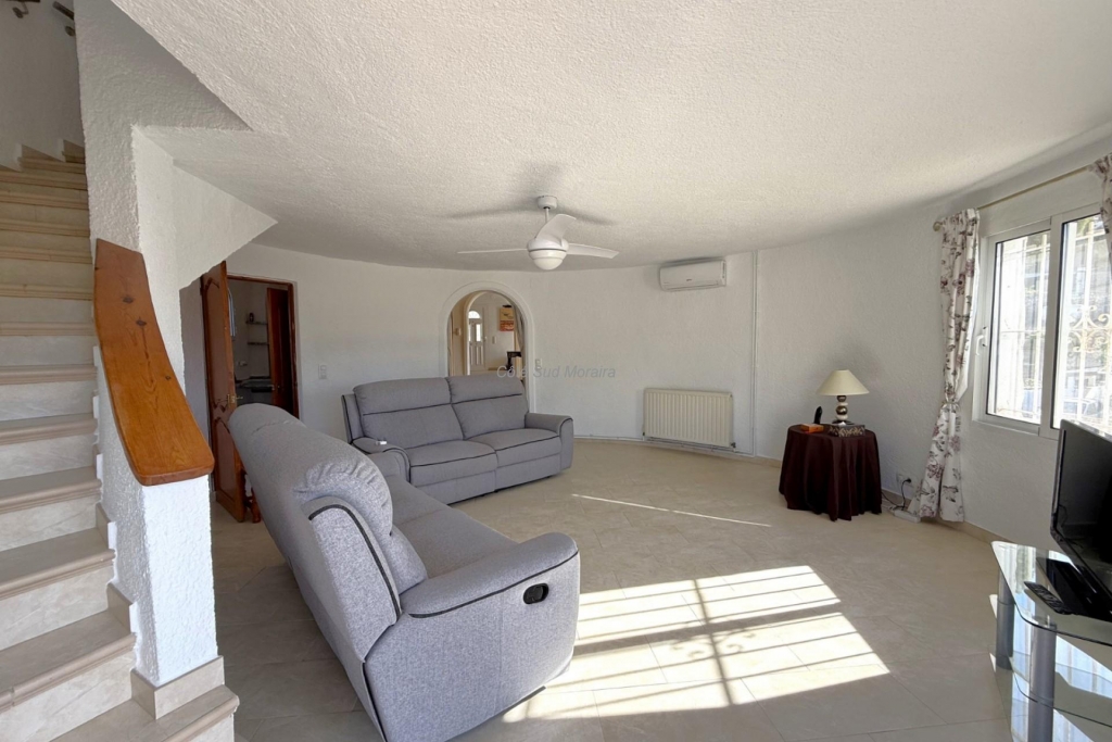 En entrant dans la propriété, au rez-de-chaussée, vous trouverez sur la droite une spacieuse cuisine ouverte reliée à la salle à manger située à gauche. À côté de la salle à manger, une petite pièce peut servir de bureau ou de chambre supplémentaire. En poursuivant dans le couloir, on trouve deux chambres, une de chaque côté, chacune avec sa propre salle de bain. Au bout du couloir se trouve le grand salon lumineux avec un accès direct à la terrasse et à la piscine. Depuis le salon, un escalier mène à l’étage supérieur où se trouve une chambre spacieuse avec salle de bain attenante. Au niveau principal, la terrasse offre une agréable naya couverte avec une cuisine extérieure, une piscine en forme de rein et une vue dégagée. Le terrain est spacieux et dispose d’un joli jardin avec des arbres fruitiers. La maison est équipée du chauffage central, de la climatisation et d’un grand parking. Son emplacement pratique permet d’accéder à pied aux supermarchés et aux restaurants, offrant confort et tranquillité dans un cadre idéal.