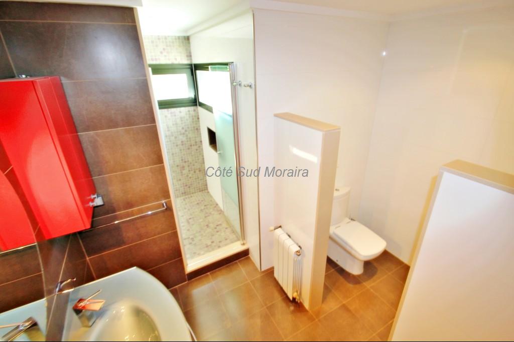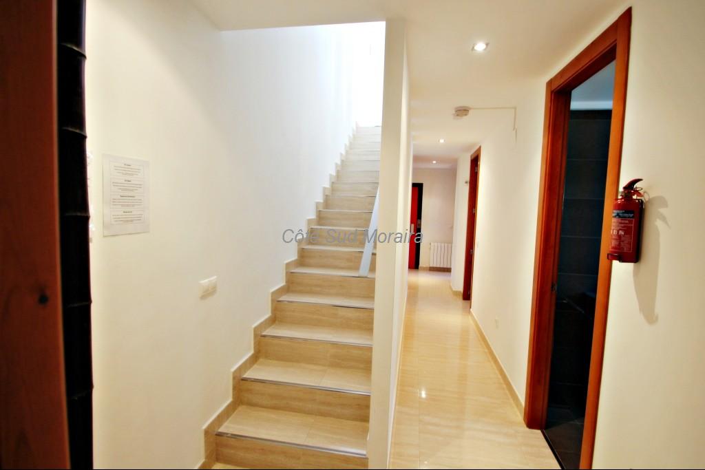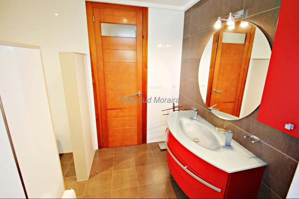 Parking , hall d’entrée , quelques marches descendent à un salon très spacieux , cuisine moderne toute équipée, salle à manger et WC. Du salon, on accède à la piscine privée et terrasse avec coin barbecue . Un escalier descend aux chambres : 2 chambres doubles avec balcon et une chambre avec lits jumeaux, une douche et une salle de bains. Toutes les chambres sont climatisées.