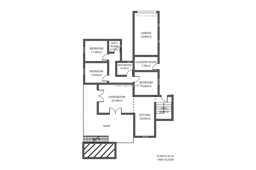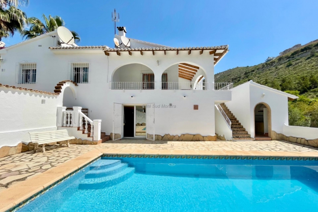 L'étage supérieur se compose d'un salon spacieux et lumineux donnant directement accès à la grande naya (terrasse couverte), d'où l'on peut profiter d'une vue magnifique sur la vallée verdoyante et la mer. La cuisine se trouve juste à côté. De plus, cet étage dispose de trois chambres doubles confortables et de deux salles de bains séparées. On accède à une buanderie pratique avec un espace de rangement supplémentaire depuis l'extérieur. Le rez-de-chaussée est accessible aussi bien par un escalier intérieur que par un escalier extérieur. On y trouve deux grandes chambres doubles, une spacieuse salle de bains familiale, des toilettes séparées pour les invités et deux grands débarras, parfaits pour le rangement ou pour être transformés en espace de vie supplémentaire. À l'extérieur se trouve la piscine privée de 8 x 4 mètres, entourée d'une grande terrasse où vous pourrez profiter pleinement du soleil. Juste à côté se trouvent une cuisine extérieure couverte et des toilettes supplémentaires pour les invités. Le jardin est aménagé avec des plantes méditerranéennes faciles d'entretien, parmi lesquelles quelques palmiers et des plantes méditerranéennes, qui apportent une touche supplémentaire et de l'intimité. Réparties sur la parcelle, plusieurs terrasses et espaces de détente vous permettent de profiter du soleil ou de l'ombre à tout moment de la journée